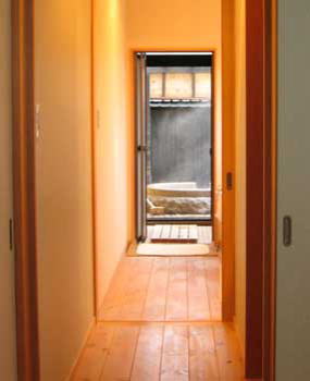 | 母屋の前には、足湯もある。 タオルも準備されてて、いつでもふらりと入ることができる。 |