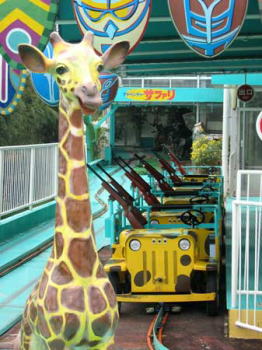 | 園内を一周してみる。 こんなシュールな乗り物も。 本来サファリは狩猟を意味してたので、正解っちゃ〜正解なんだけど。 |