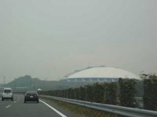 | そして、ビッグアイ。 日韓ワールドカップの会場になった、大分トリニータの本拠地。 臼杵に向かうときは左に見えるんだけど、これは帰りに撮った画像なので右に見えてる。 |