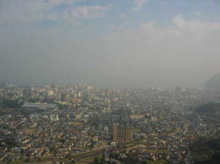 | そして、別府側。 天気が良ければ、町の向こうに別府湾が見え、さらに奥には四国の佐田岬が見える。 |