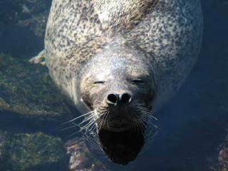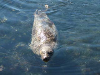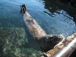 駐車場に車を停めて、坂道を下って行くと、海を柵で囲んだプールがあり・・・、いたいた!ゴマフアザラシが2頭いました。