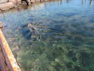 1頭はお昼寝タイム。もう1頭は、気持ち良さそ〜〜〜に泳いでる。