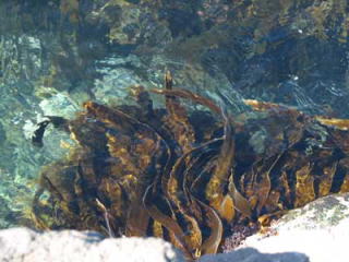 ここの海は透明度が高く、海岸から覗いただけで昆布がたくさん見える。美味しい美味しい利尻昆布。
