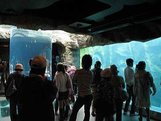 円形の水槽は大水槽とつながっていて、大水槽にもアザラシがたくさんいる。