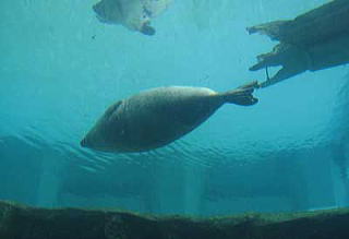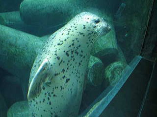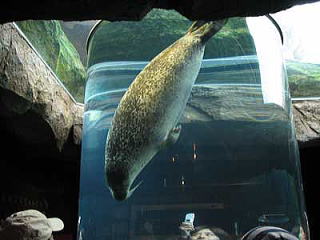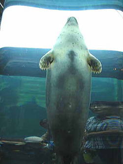 | 隅っこでじーーーっとしてたアザラシ君 | 逆さ泳ぎ中 |