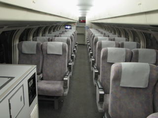 | 乗り込んだ3号車が、その2階席。 車両の高さ自体は、1階建てと変わらないので、2階はちょっと閉塞感があるかな・・・。 1階建て車両も、通常より高い位置にシートがあるため、先頭のワイドビュー指定席の方が良かったかも・・・。 ちなみにこの列車、遠軽で進行方向が変わる。 |