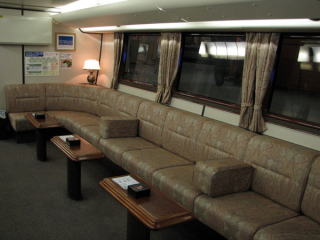 | 2階建て車両の1階は自由席ラウンジになっている。 特別な消印が押される郵便ポストが設置されているのもここ。 子供連れには、良いスペースだ。 |