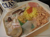 | 発車するとすぐに車内販売のアナウンスが流れた。 遠軽名物のかにめしを予約すれば、遠軽で積み込んでくれるらしい。 しまった・・・。必ず買えるのなら車内で購入すればよかった・・・。 しかもかに飯・・・。 「買わんでいいと?もう買えんよ。」 と言ってくれる殿に、 「いいと。買ったのがもったいないもん。」 と涙を飲みつつ返事をする。 いいのだいいのだ、私には盛りだくさんの「えぞ賞味」があるのだ。 |