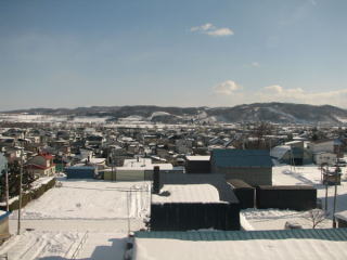 | 列車は、玉ねぎの産地北見を通過。 雪に覆われて、真っ白に積もっている所が何なのかさっぱり分からないけど、この辺りは雪が融けると、車窓にはきっと玉ねぎ畑が広がるのだろう。 |