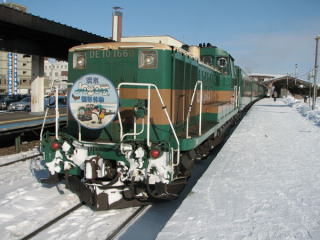 | 10分程停車していたノロッコが、満員の乗客を乗せて去っていった。 後に残ったのは、私たちの外に2名ほど。 |