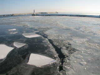 | 湾内を出ると、氷が姿を消した。 | ![]() |