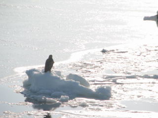 | 再び、流氷が現れ・・・。 「右手にオオワシです」 「右手にアザラシです」 と、アナウンスが。 動物好きの我が家はテンションあがりっぱなし! |